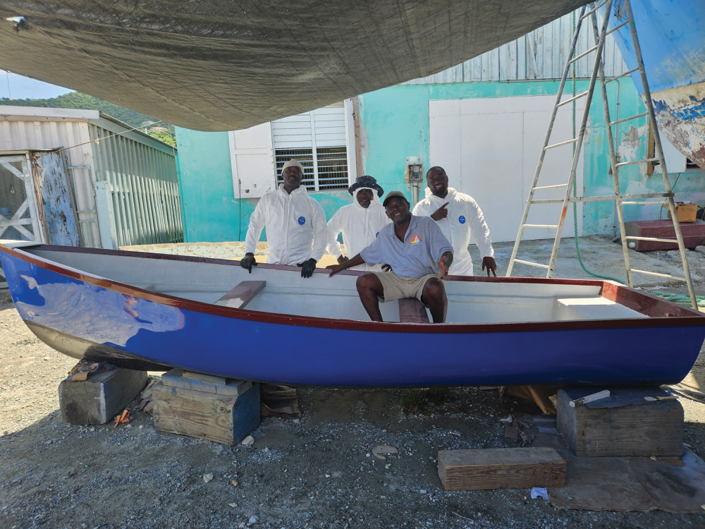Tony Heyliger of Tony’s Marine Refinishing Services and Miles Sutherland Pilch of Nanny Cay Resort & Marina donated a custom-made dinghy to the nonprofit organization Kids and the Sea (KATS). Tony made the rowboat himself from creating the mold to completion of the boat. Miles of Nanny Cay Resort & Marina donated space in the boatyard for building and supplies to build the boat continuing their longtime commitment to water safety and support of KATS.