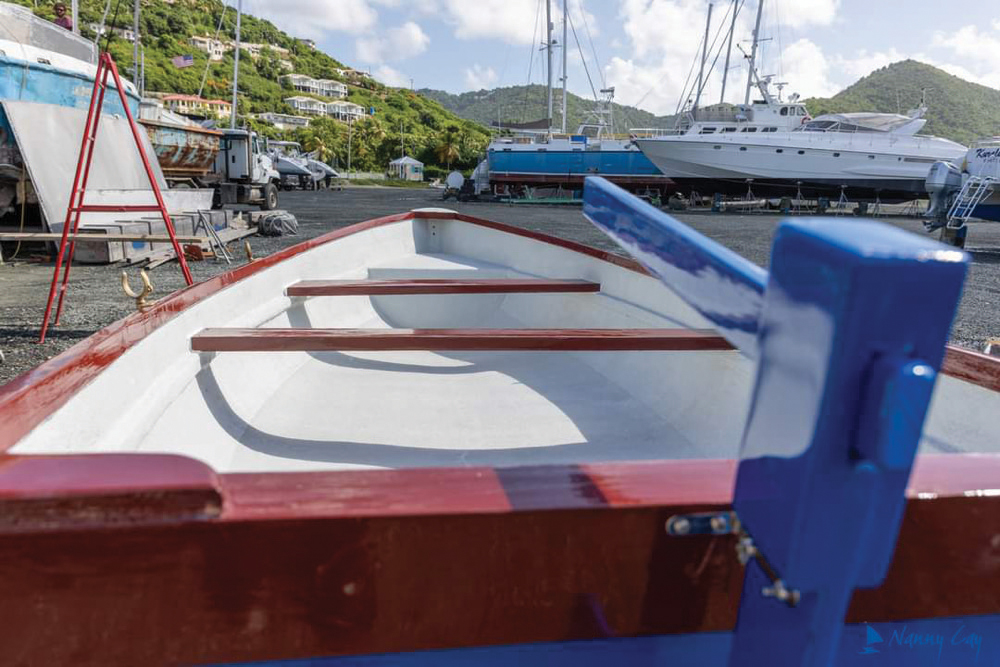 Tony made a brand-new rowboat, and he repaired the good old faithful red rowboat with the help of Miles and Nanny Cay Resort & Marina. Fiberglass, resin, wood trim etc. were donated from the Chandlery.